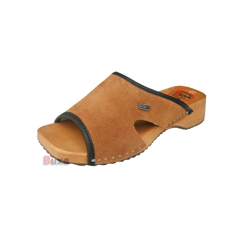 HasználatNői klumpák egy emelvényen teljes orrral, szabadidős viselethez, de akár munkához papucsnak is A csúcs Dupla természetes szálcsiszolt bőr perforáció nélkül, zárt orrral Egyetlen Könnyű és erős hársfa ragasztott vastagabb gumi csúszásgátló talppalMagasság 5 cm magas sarok 2,5 cm talpvastagsággal BefogásG méretben szabályozási lehetőség nélkül Szélesség Közepes és széles lábfejekhez TanúsítványCE - Megfelelőségi tanúsítvány, EN-20347 tanúsítvány Méretek35-41Rsebesség és szállítási lehetőségek