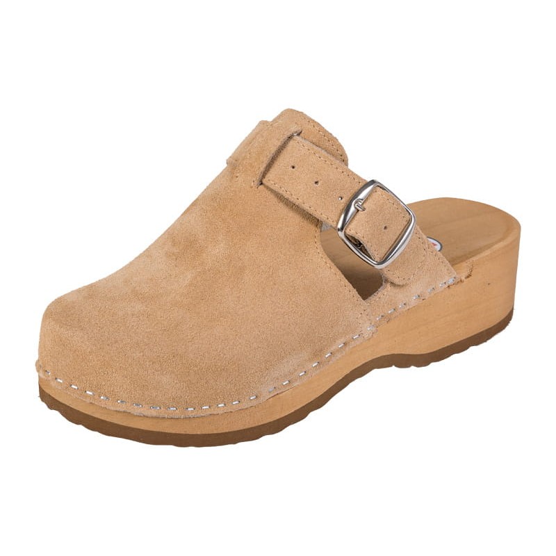 A használat Női melegített klumpa egész napos viseletre a munkahelyen, de akár otthoni papucsnak is A csúcs Dupla természetes, nem perforált szálcsiszolt bőr önvarrott varrásokkal, amelyeket fém csatok tartják a helyükön és szőrme szigetelt Egyetlen Tömör égerfa ragasztott poliuretán csúszásgátló talppal és felülre ragasztott szőrme az alsó melegítésére Magasság 4,5 cm, 2 cm talpvastagsággal Befogás G méretben szabályozási lehetőség nélkül Szélesség Közepes és széles lábfejekhez Bizonyítvány CLPO - orvosi lábbeli, CE - megfelelőségi tanúsítvány Méretek 35-41 Sebesség és lehetőségekszállítás