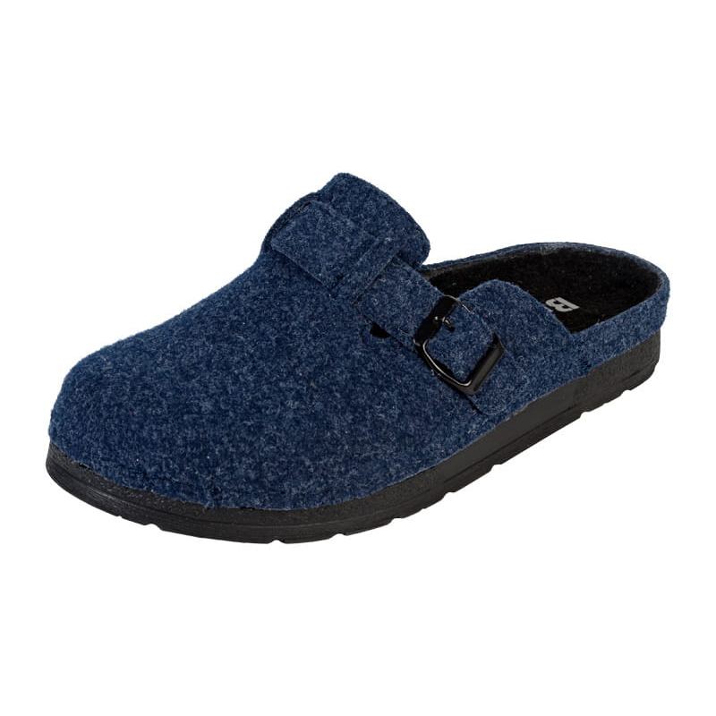 A BZ455 férfi egészségügyi papucsok nagyon kényelmesek és meleg házi cipők. A papucs felsőrésze természetes gyapjú filcből készül. A természetes gyapjú filcet bárányok gyapjának filcben történő feldolgozásával állítják elő. Az egyedi szerkezetének köszönhetően a filc megtartja a cipőben a száraz és meleg mikroklímát, biztosítja a levegő természetes keringését, ami közvetlenül érvényesül a megfelelő lábhygiéniában, garantálja a kényelmet és a frissesség érzését egész nap. Az ilyen cipő egészséges és antiallergén. Oldalt fémcsattal rendelkezik, amellyel a cipőt a sarok magasságához lehet igazítani. A bélés alatt szuper puha hab található - amely további kényelmet biztosít a járás során.