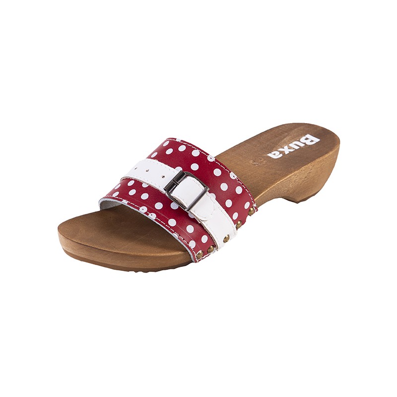 A használat Elegáns női klumpa hétköznapi viselethez a meleg nyári napokon A csúcs Speciális fóliával borított dupla természetes bőr, bőrszíjjal összehajtva, csattal ízléses fémszegecsekkel Egyetlen Poliuretán csúszásgátló talppal ragasztott világos hársfa Magasság 4 cm Befogás Csak fémkapcsos bőrszíjjal töltsd le Szélesség Közepes széles lábakhoz Bizonyítvány CE - Megfelelőségi tanúsítvány Méretek 35-42 Sebesség és szállítási lehetőségek