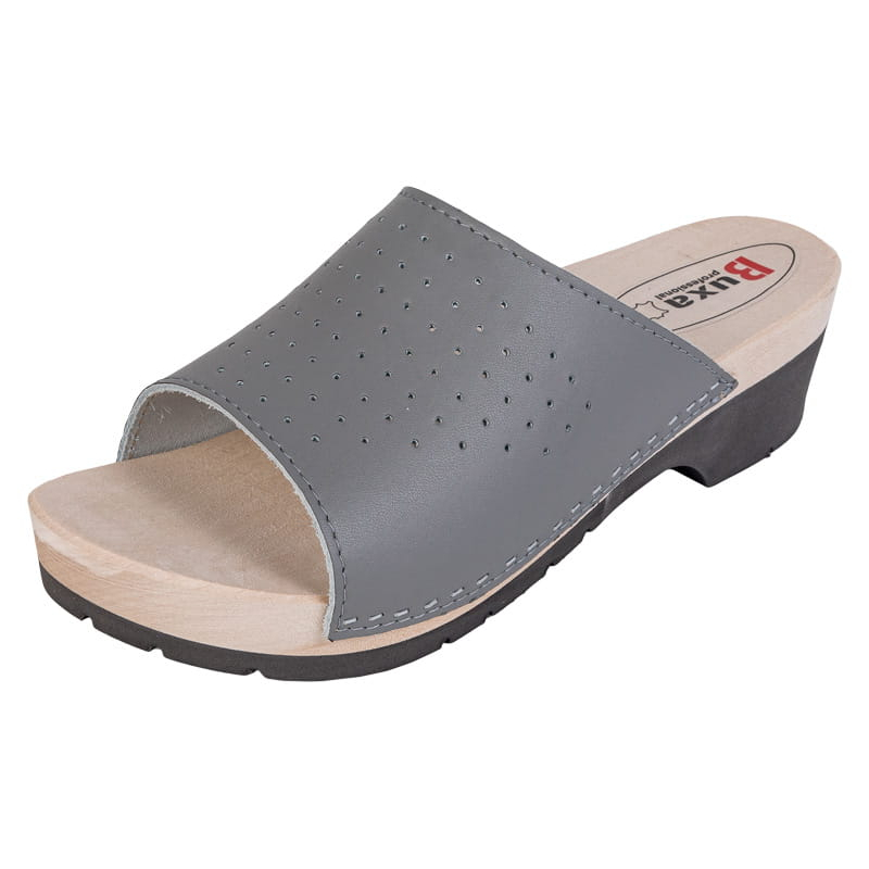 A használat Munkacipők egész napos viseletre az egészségügyben, konyhában, de papucsként is használhatók különféle iparágakban A csúcs Dupla természetes bőr, speciális perforáció nélküli fóliával borítva, a sarokban műanyag ráccsal Alsó Hajtogatott, felső része ortopéd alakú hársfából, alsó része gumiból Egyetlen Minőségi csúszásgátló poliuretán talp, amely elnyeli az ütéseket és az ütéseket Magasság 5 cm-es sarok, 2,5 cm-es talpvastagsággal Befogás Befogás és szabályozás nélkül G méretben Szélesség Közepes és széles lábfejekhez Bizonyítvány CLPO - orvosi lábbeli, CE - megfelelőségi tanúsítvány Méretek  35-46 Sebesség és szállítási lehetőségek