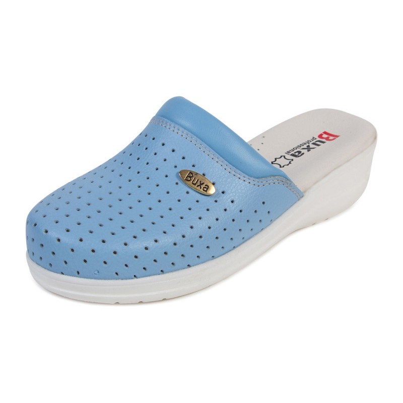 HasználatMunkacipők egész napos viseletre az egészségügyben, a konyhában, de papucsként is használhatók különféle iparágakban A csúcs Dupla természetes bőr, speciális fóliával borítva perforáció nélkül, bőrszíjjal, csattal a lábfejen BelülBelseje teljes kiőrlésű bőrrel bélelt, anatómiailag formázott talpán, finom perforációkkal a szellőzés érdekében.Egyetlen Kiváló minőségű csúszásmentes poliuretán talp fehér vagy fekete színben ütéselnyelő talpbetéttelMagasság 4,5 cm-es sarok 2 cm-es talpvastagsággal BefogásBőr szíj csattal G méretben Szélesség Közepes és széles lábfejekhez TanúsítványEN-20347, CE tanúsítvány - Megfelelőségi tanúsítvány Méretek35-42Rsebesség és szállítási lehetőségek