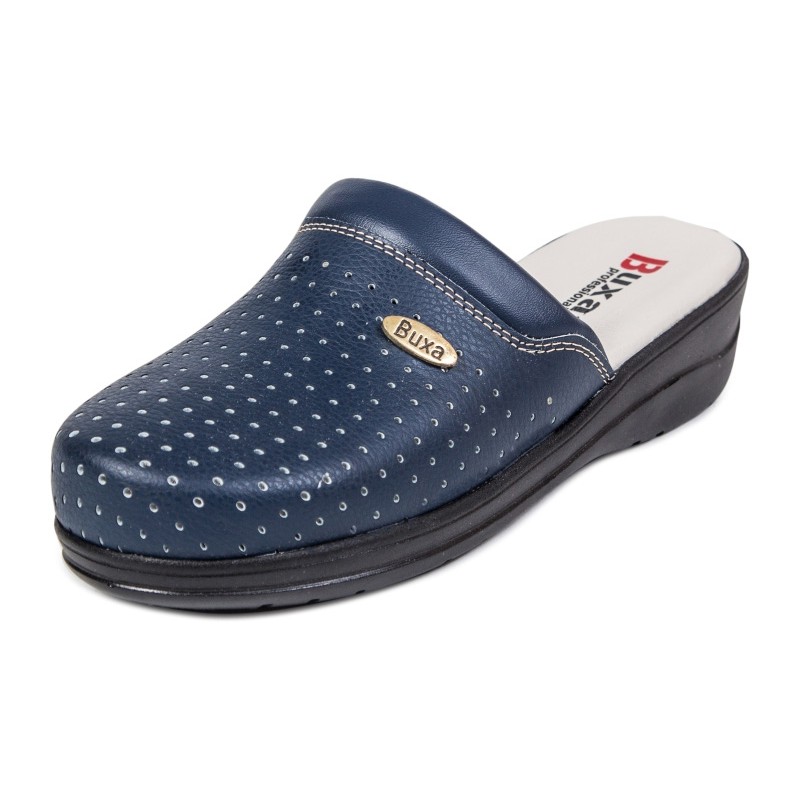 HasználatMunkacipők egész napos viseletre az egészségügyben, a konyhában, de papucsként is használhatók a különböző iparágakban A csúcs Dupla természetes bőr, speciális perforáció nélküli fóliával borítva, valamint csattal ellátott bőrszíj a lábfejen és a sarokban. BelülBelseje teljes kiőrlésű bőrrel bélelt, anatómiailag formázott talpán, finom perforációkkal a szellőzés érdekében.Egyetlen Kiváló minőségű csúszásmentes poliuretán talp fehér vagy fekete színben ütéselnyelő talpbetéttelMagasság 4,5 cm-es sarok 2 cm-es talpvastagsággal BefogásBőr szíj csattal G méretben Szélesség Közepes és széles lábfejekhez TanúsítványEN-20347, CE tanúsítvány - Megfelelőségi tanúsítvány Méretek35-42Rsebesség és szállítási lehetőségek