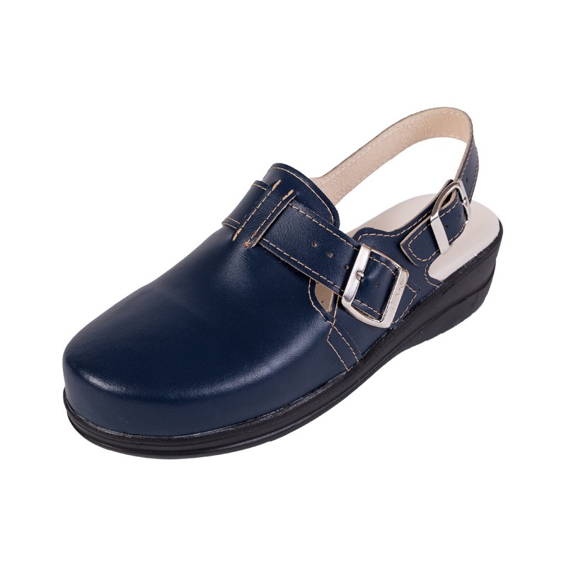 HasználatMunkacipők egész napos viseletre az egészségügyben, a konyhában, de papucsként is használhatók a különböző iparágakban A csúcs Dupla természetes bőr, speciális fóliával borítva perforáció nélkül, bőrszíjjal, csattal a lábfejen BelülBelseje teljes kiőrlésű bőrrel bélelt, anatómiailag formázott talpán, finom perforációkkal a szellőzés érdekében.Egyetlen Kiváló minőségű csúszásmentes poliuretán talp fehér vagy fekete színben ütéselnyelő talpbetéttelMagasság 4,5 cm-es sarok 2 cm-es talpvastagsággal BefogásBőr szíj csattal G méretben Szélesség Közepes és széles lábfejekhez TanúsítványEN-20347, CE tanúsítvány - Megfelelőségi tanúsítvány Méretek35-42Rsebesség és szállítási lehetőségek
