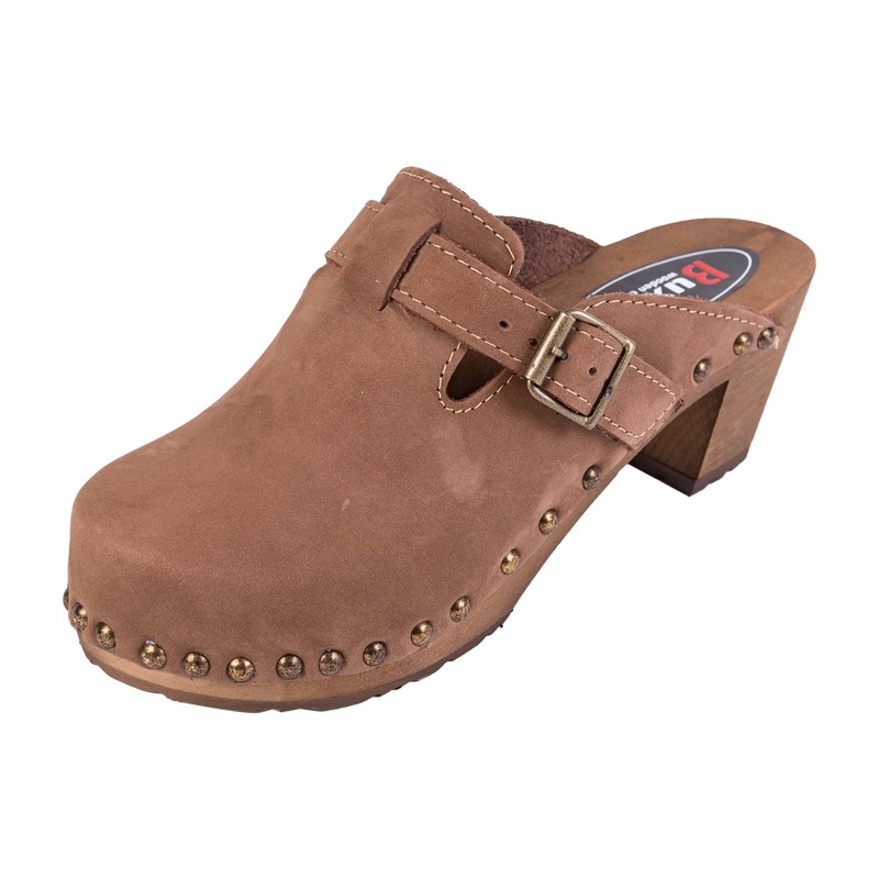 Női elegáns klumpák magas sarkú OS4-en, mint a klasszikus klumpák telt orrral 7 cm magas sarkon, ami az alsóhoz hasonlóan világos hársfából készült, robusztussága pedig erőt és stabilitást biztosít járás közben. Ez egy olyan modell, amelyet a nők kedveltek hétköznapi elegáns cipőként, de különösen egész napos viseletként. Az OS4 modell klasszikus sima bőrből és nubuk bőrből készül. Ezek a klumpák olyan nők körében népszerűek, akik szeretnék megőrizni a fedett lábujj színvonalát, de előnyben részesítik a magasabb sarkú cipőket. A jobb rögzítés és a lábhoz való alkalmazkodás érdekében a felsőrészbe egy fém csattal ellátott bőrpánt kerül be, melynek köszönhetően a felsőrész állíthatóvá válik. A széles színválasztéknak köszönhetően könnyedén összeillesztheti őket a munkahelyén található divatos kiegészítőkkel, munkaruhákkal vagy céges színekkel.